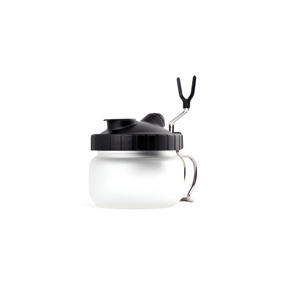 Artık airbrushlarınızı zahmetsizce ve ortalığı kirletmeden temizleyebilmek için yeni bir yol var. Haznede kalan artık boyayı bu cam kabın içine boşaltabilir, keçe filtresi sayesinde de solvent bazlı boyaların çevreye saldığı kokuyu da içeri hapsetmiş olursunuz. Kabı kullandıktan sonra yıkamanız yeterli.