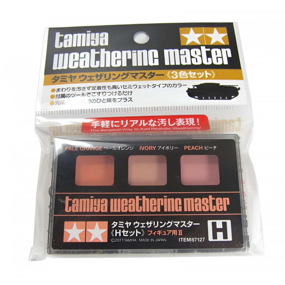 Tamiya, insan figürü modelleri üzerinde kullanıma özel Weathering Master setleri geliştirmiştir. Bu pigmentler sayesinde cilt tonlarında kolayca gölgeleme ve ton geçişi efektleri elde edilebilir. ★ H Set; vurgulama (highlight) amaçlı renklere odaklanır: Soluk Turuncu, Fildişi ve Açık Şeftali tonları içerir.