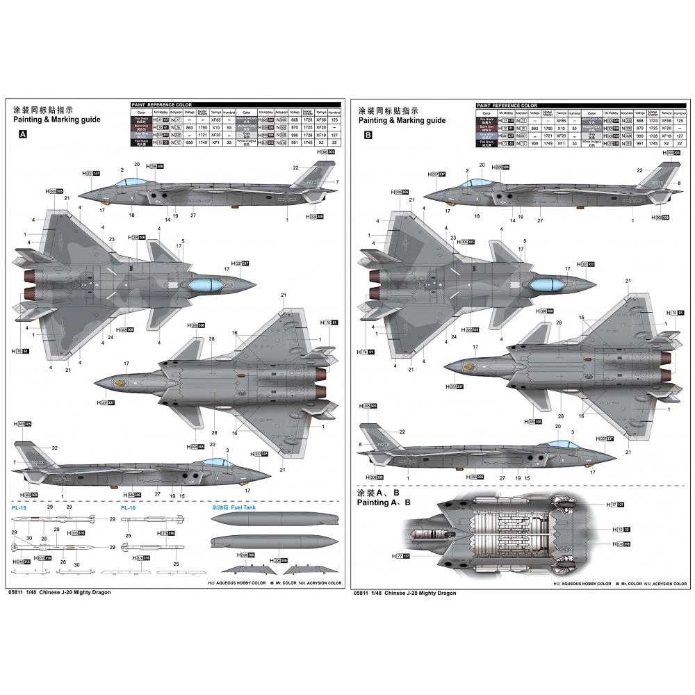 1/48 Chinese J-20 Mighty Dragon Plastik Uçak Maket Kiti
