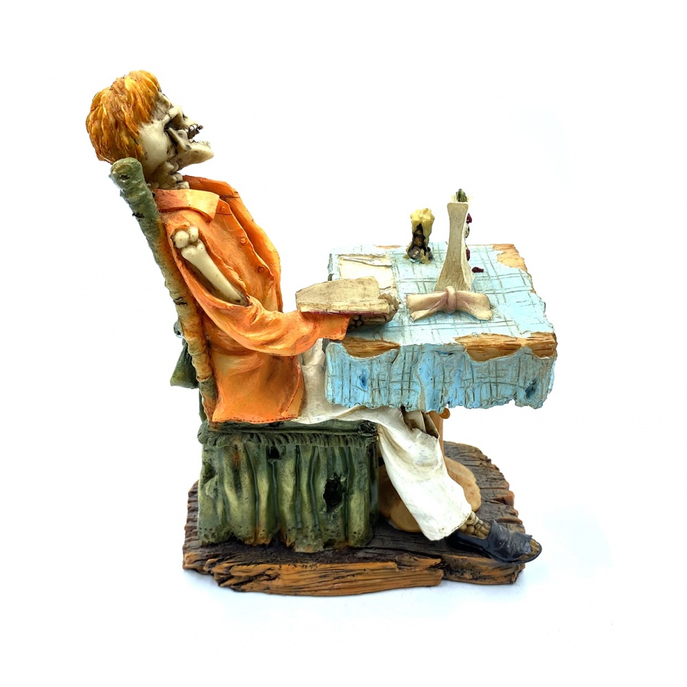 Bu ürün, dünyaca ünlü Veronese Design' ın İskeletler teması kolyeksiyonuna ait bir dekoratif heykeldir. Veronese Design, detaylı tasarım ve sanatsal boyama teknikleri ile dünyada dekoratif figür heykel sektörünün en bilinen markalarındandır. Kendine özgü teknikleri ile tamamen sanatçılar tarafından boyanarak son haline getirilmiştir. Boyama kalitesine bağlı olarak piyasada bununan taklitlerinden tamamen ayrı bir duruş sergiler ve kolyeksiyon değeri taşır.